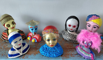 - objecten van o.a. papier-mache, draad, stof en olieschilderijen